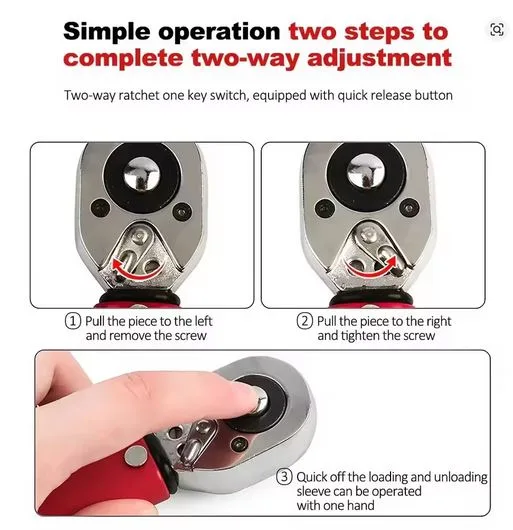 Engineered with a robust chrome-vanadium steel body, it resists wear and corrosion, ensuring long-lasting strength and durability. The 1/2-inch drive head with quick-release design allows for effortless socket changes, saving time and enhancing workflow efficiency. The wrench features a bi-directional ratchet mechanism, enabling both clockwise and counterclockwise torque applications with smooth handle rotation.