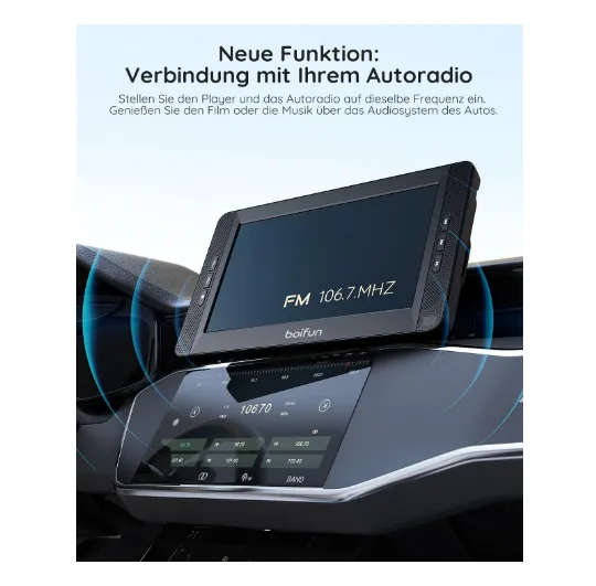 BOIFUN BFN-101 DVD Player Car 2 Screens 10.5 Inch is an ideal portable TV DVD player for e-commerce buyers in Pakistan. It combines long battery life, HD picture quality, USB playback, and FM audio with a budget-friendly profile. It is a strong upgrade over basic tablet screens, delivering lag-free, ad-free entertainment without depending on Wi-Fi or 4G coverage in remote areas.