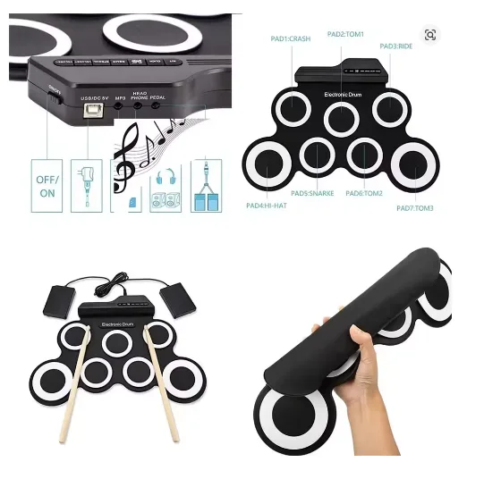 If you’re passionate about drumming but lack space for a traditional drum set, the New Folding Silicone Hand Roll USB Electronic Drum Portable Practice Drums Pad Kit with Drumsticks and Sustain Pedal is your perfect solution. This portable drum kit is designed for musicians, beginners, and music learners in Pakistan who want a lightweight, travel-friendly, and high-quality practice tool.