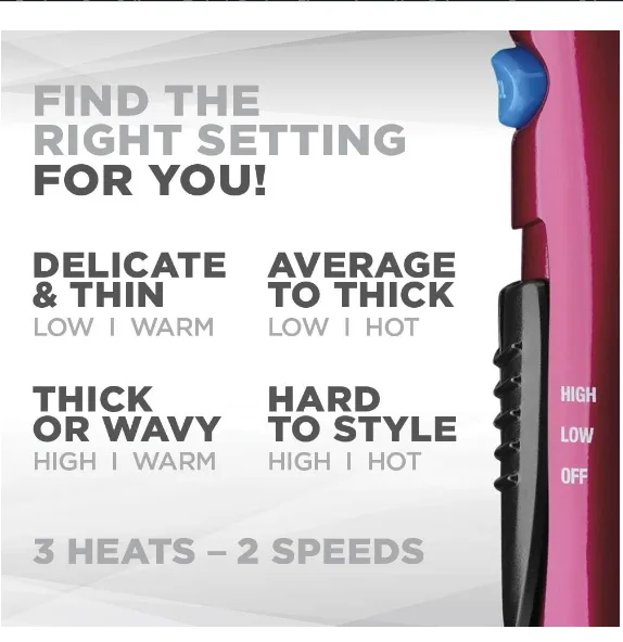 This Conair model includes a diffuser and concentrator attachment, so you can create volume, define curls, or achieve a sleek straight look with ease. The 1875-watt motor provides efficient airflow for quicker drying, while multiple heat and speed settings give you better control for different hair types. Its pink finish adds a modern and attractive look, making it a stylish addition to your beauty essentials.