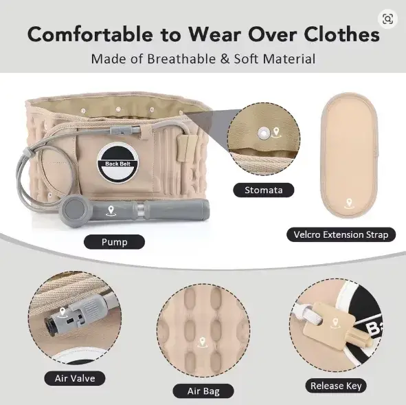 >>>>It is used to support the lumbar spine, improve posture, and help manage back pain symptoms by providing inflatable Air Tration and stabilization.