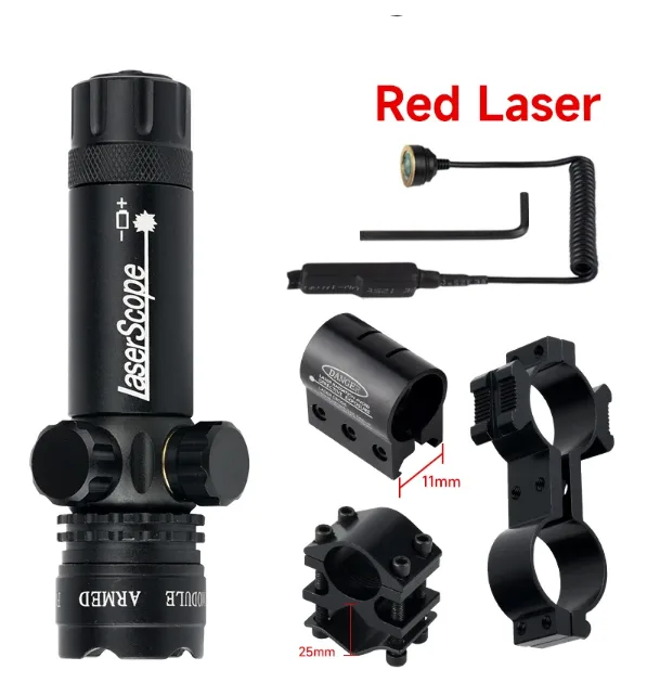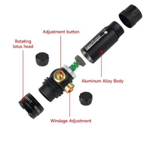 A compact tactical adjustable hunting shooting laser that mounts on 20mm rails, projecting red or green dots for precise aiming on handguns, airsoft rifles, and more.