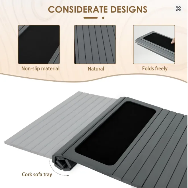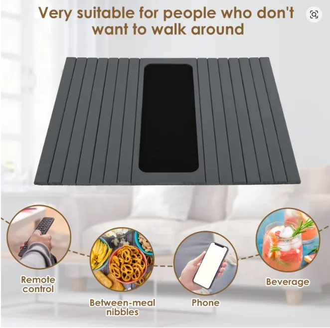 One of the standout features of this wooden sofa arm tray is its foldable flexibility. It adapts to different armrest sizes, making it compatible with most sofas.