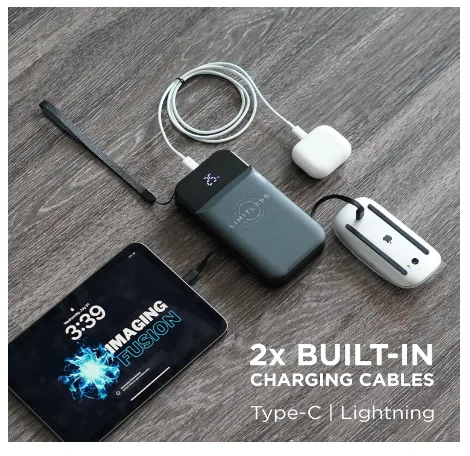 - Built-in Lightning & Type-C Cables: No extra wires needed; charge iPhones, Samsungs, Google Pixels, and more directly.