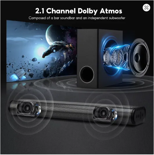 Upgrade your TV audio with the S07 2.1 Sound Bar 150W featuring a wireless subwoofer, Bluetooth connectivity, and multiple input options including HDMI, AUX, Optical, and USB. It delivers powerful sound, deep bass, and clear vocals for movies, music, gaming, and everyday entertainment.