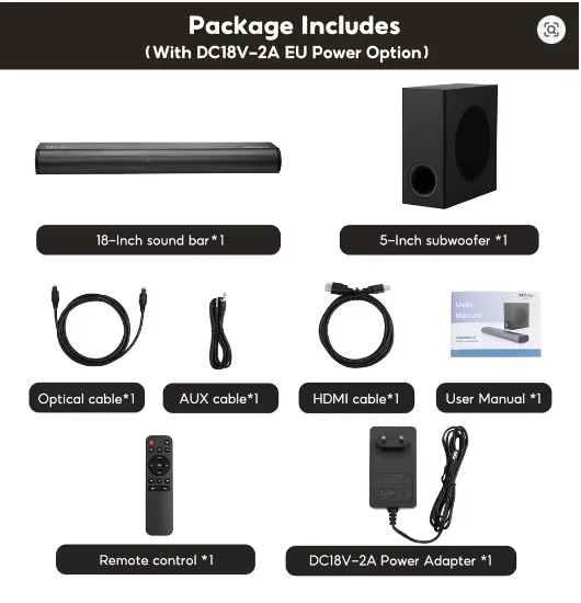 - Connectivity: Bluetooth, HDMI, AUX, Optical, USB