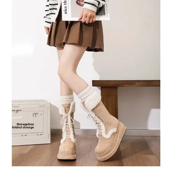 Inside, a thick cotton padding and ultra‑soft fur lining wrap your feet in cozy warmth, making these winter boots ideal for long days outdoors, office commutes, or evening walks. The high tube design gives extended coverage around the calf, helping to shield your legs from chill and preventing snow from slipping inside the boot.